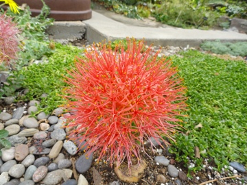 This little honey is South African, and no...Mike Kintgen does not believe it is hardy (he lifts the bulbs before hard frost): but what a spectacle this magnificent Amaryllid makes in the South African Plaza! I have seen Brunsvigia and Haemanthus in South Africa, where they can color the landscape for miles. Won't it be just peachy if we can eventually find some hardy ones to grow permanently outdoors?