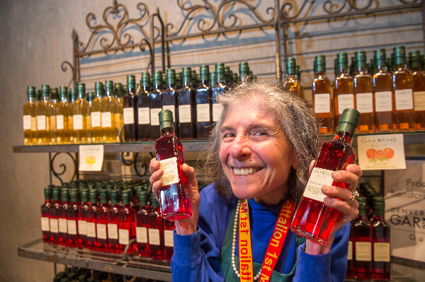 A: Guild vinegars are unique because they are created almost entirely at Denver Botanic Gardens. The herbs we use are grown in the Gardens and are hand-picked by Guild members. The peppers for the Spicy Chili Pepper vinegar are grown at Chatfield Farms. We hold workshops at the Gardens where Guild members infuse and bottle the product. Then, the vinegars are sold exclusively at Winter Gift Market and in the Shop at the Gardens.