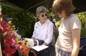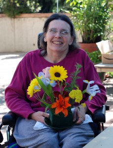 At the end of each tour with our disabled guests, there is a project to take with them. Flower arranging, potting herbs and planting topiary were this year’s projects. While some of the men are reluctant to do the flower arranging, they produce a beautiful bouquet with a little encouragement. Watching the guests enjoy the tour and their smiles as they leave with their projects provides satisfaction and the desire to give more tours another day. There are times when I like to enjoy the garden on my own. There are always visitors strolling through the Sensory Garden enjoying the various unusual plants. They bend over to touch the soft lamb’s ear or smell the pineapple sage and smile just like I do. Many say they didn’t know you could mix the plants with the various senses into a beautiful garden. They leave with plans to incorporate those ideas into their own gardens.