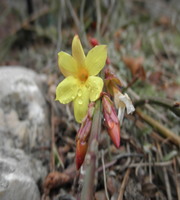 While the official solar start of spring is still eight days away on March 20th, I think it is safe to say that spring has sprung in the Rock Alpine Garden. True, there may be many more snow storms and still plenty of mornings to scrape ice off of windshields, but the true harbingers of spring are in full glory now. Other gardens at Denver Botanic Gardens are showing signs of spring as well, but  few do it with such diversity as the Rock Alpine Garden (RAG).  Three species of Galanthus, at least five species of Crocus, three species of  Helleborus, Erica carnea, Draba aizoides,  Jasminum nudiflorum, Cyclamen, Scilla and Iris reticulata are just part of the parade that will change almost daily now that it is March. Crocus are one of the most famous flowers of spring but most of us think about or photograph them open in the sun, Monday's cloudy skies allowed me to photograph them closed up revealing the often highly patterned  or colorful reverse.       Above are Crocus korolkowii,  and a cultivar of Crocus sieberiCrocus chrysanthus 'Fuscotinctus' below is another favorite of mine when closed. Hopefully these photos show a  different side of Crocus, or at least portrays them in a different light.  Moving on to another "Bulb" or corm is Cyclamen alpinum.  People are surprised to find out there are Cyclamen hardy in Denver, but 10 species are currently living in the Rock Alpine Garden.  I would say about five of these are very good performers, the others need a really special spot.  Cyclamen alpinum is always the first to open the Cyclamen season each year, followed shortly by Cyclamen coum.  This year C. alpinum is late, some years it starts as early as the beginning of February.  In addition to Cyclamen, more Helleborus are opening with the warmer weather.  Now Helleborus viridis has joined H. vesicarius and H. niger which has been going since November and was the only flower blooming on Christmas! Lastly I leave you with a photo of Jasminum nudiflorum.  Most people think of Jasmine as another tender genus but two species live in the rock garden.  Both are yellow and lack  the famous fragrance.  J. nudiflorum earns its keep by flowering in late winter often a few weeks before the Forsythia.