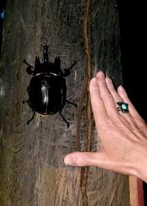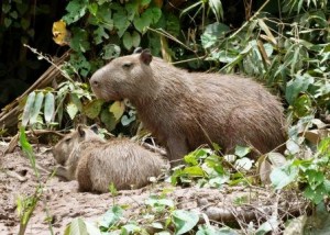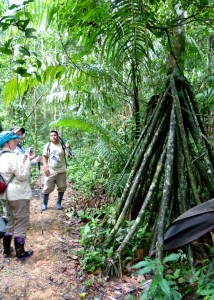 For several folks in our group, today is the beginning of the second phase of our Peru Discovery adventure. After seeing the country’s desert coast and high Andean Mountains, we are off to the Amazon River basin of Southeastern Peru. After a quick flight from Cusco to Puerto Maldonado, we hopped a short shuttle ride to our Amazon adventure headquarters where we downsized our luggage for our trip up the Tambopata River and into the jungle. During our ninety minute boat ride, we enjoyed an al-fresco lunch of fried rice, chicken and a delicious salty cheese all served wrapped in a banana leaf. Our utensils and napkins as well as all the food containers were compostable which meant our entire meal created no trash. Next time you get take-out food, take a moment to analyze just how much trash is created from that one meal and how many millions of people are doing the same thing every day. Earth Day is always a good time to recommit to Reduce, Reuse and Recycle. Our destination for this leg of our trip is Posada Amazonas, a jungle lodge operated as a partnership with the local community of Infierno. Their goal is to develop a profitable, responsible ecotourism experience while directly involving the local people. The lodge and its activities create jobs and provide income to the 170 plus families living in the Infierno territory. After meeting our guide Yuri and checking into our rooms we immediately set out on a hike to an observation tower for an over-view of the jungle. At nearly
