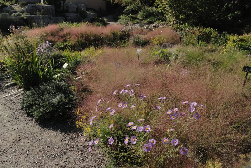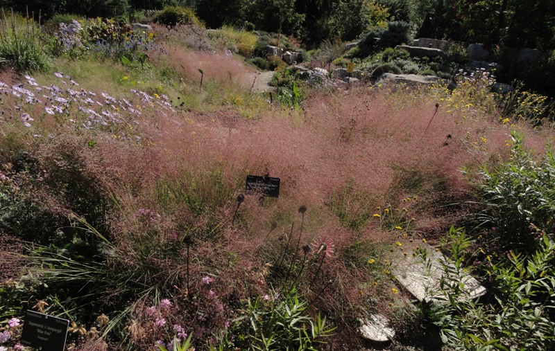 - Well...some day you will be able to tell your progeny that you were there, that you SAW Muhlenbergia reverchonii produce its gauzy halo of glowing rose/mauve sparks in the dying embers of the day, in the dying embers of our growing season! If you are not able to visit us at the Gardens, you can see a spectacular planting at the Gardens at Kendrick Lake in Lakewood (the gardens are on the NW corner of Jewel and Hoyt...the plant is on the SE-most bed of the gardens.) You'd be a fool not to come to Denver botanic Gardens, however--it's too gorgeous for words right now. Come before hard frost, although the horticulturists are busily (rapidly, and very tactfully) disassembling the summer displays in anticipation. But let's not talk about that!