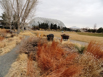 Every few days throughout the winter months, a crisp lenticular cloud perches overhead--I realize there are clouds everywhere, but somehow, the architecture of Denver Botanic Gardens seems to frame the sky in a distinct fashion. Of course, there are mercurial sculptural effects within each garden, often interacting with real sculptures--but the gardens themselves are vessels of a sort--an enormous landform sculpture, filled with not-so-dormant plants, hardscape tweaked to frame vistas and to cup the grandiloquent and ever changing steppe sky and its scudding clouds.