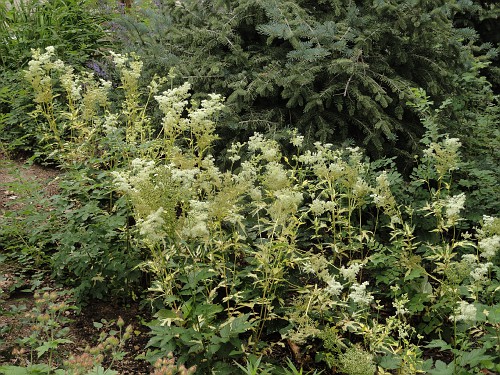 These Filipendulas superficially resemble Astilbe, although their flowers have a rakish, slightly tipsy look to them unlike the symmetrical spires of Astilbe. Of course, filipendulas are in the rose family while Astilbes are saxifrage cousins. We collected seed of white filipendulas on the steppes of Kazakhstan which will be adorning several spots in Plantasia next year.