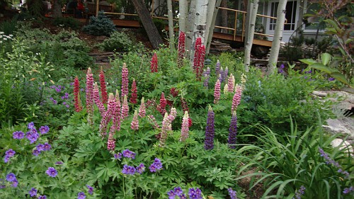 You will find spectacular plantings of lupines in mountain gardens throughout the state, like these in Conifer. These are descended from wild species restricted to the Pacific Northwest, British Columbia and Alaska, so they seem to do best in cooler climates and at altitude. I have seen fine specimens nonetheless in Denver. These are a parting glimpse of that same mountain garden of two long term, enthusiastic supporters of Denver Botanic Gardens. Now perhaps if I can only persuade my colleagues to get these into our York Street and Chatfield gardens...(sigh)