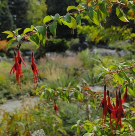 These pictures were all taken exactly one month ago: most years we have a dusting of snow by early October, and light frosts, but this amazing year the autumn wore on and on. But by Thanksgiving, winter rules the roost. Each year I am astonished at how utterly the landscape transforms with the first hard frosts: one day things look almost summery, with fuchsias dangling in the gentle breeze, annuals in prime form and blazing fall color everywhere. Abruptly, the leaves fall, the tender plants are crisped and hardy plants hunker down.