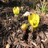Eranthis hyemalis is the last bulb featured this week. A member of the buttercup family you can see the resemblance to several of our native buttercups found in the high country. On a side note the buttercup family has been broken up and Eranthis maybe in the hellebore family. This cheery little gem is under the Magnolia at the east entrance of the Rock Alpine Garden.