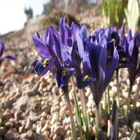 Iris reticulata cultivars have been getting well deserved attention now, and Iris 'Pixie' pictured above makes up for it's smaller size with the intensely deep color of its flowers. It graces the top of the waterfall at the highest point of the garden. The blooms are less weather resistant than crocus, and snow and temperatures above 70 make them go away quickly. Actually temperatures in the 30s through low 60s make most bulbs last longer than warmer temperatures.