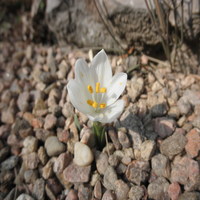 Sternbergia candida is a lovely white flowering bulb in the Amaryllis family. It is rather rare in gardens, as all Sternbergia are CITIES listed meaning permits are needed for them to cross international borders. This is done in part to curb the widespread collection of bulbs out of their native habitats. Many species of bulbs are still in dangered of extinction through gathering for the horticultural trade, and habitat loss. Enjoy the photo of the Sternbergia is it is in a part of the garden not accessable to the public.