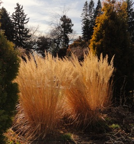 There are many peccadilloes that annoy sensitive horticulturists: seeing street trees butchered because of bad placement or powerlines, for instance. For me, it's seeing grasses in shopping centers chopped back to crewcuts by the acre in early fall. One of the great visual pleasures of winter is golden backlighting on clumps of bunchgrass in late afternoon. This picture was taken a month ago in the Romantic Garden at Denver Botanic Gardens, but you can find this and dozens of other grassy vignettes glowing still around the Gardens where our horticultural staff stave off the inevitable "cut back" as long as they can. But in the next few weeks, tens of thousands of bulbs start growing in earnest, and the time for winter grasses will have passed. By the way, Korean feather reed grass was inducted in 2009 by Plant Select. Although it is fertile, and can self sow a bit if mulched with gravel, we find that mulched thickly with compost and planted in part shade, it is much more striking than its overused cousin, Karl Foerster grass. We can all use a bit more gold in our lives, don't you agree?
